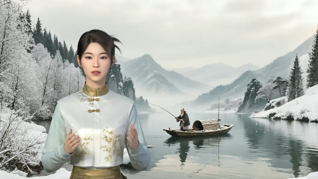 再看 “孤舟蓑笠翁,独钓寒江雪”。意思是江面上有一条小船,船上有个钓鱼的老爷爷,穿着蓑衣、戴着斗笠,一个人在冰冷的江面上钓鱼。冰天雪地里,老爷爷却独自垂钓,他看似孤单,却又十分淡定,享受着这份不被打扰的宁静 。